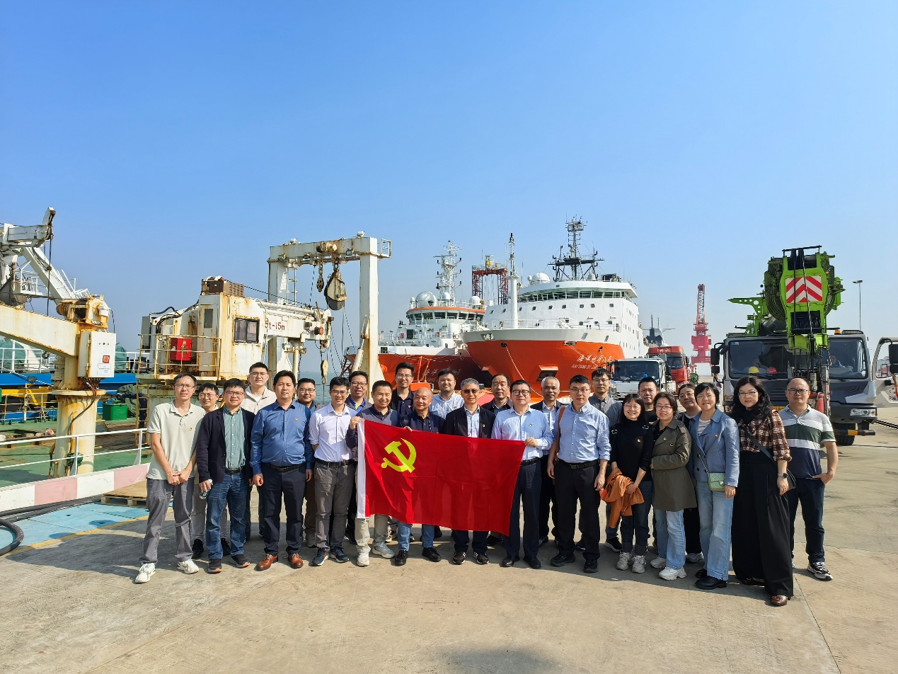 2025年12月9日,中国科学院广州地球化学研究所(简称“广州地化所”)深地过程与战略矿产资源全国重点实验室第二党支部和先进环境装备与污染防治技术全国重点实验室党支部,在党委书记、副所长张海祥的带领下,赴自然资源部广州海洋地质调查局(简称“广海局”)开展“党建业务深融合,科技赋能向深蓝——学习贯彻习近平总书记致‘梦想’号大洋钻探船建成入列重要贺信精神一周年主题教育”党日活动。广海局天然气水合物工程技术中心环境评价室党支部书记梁前勇主持活动。