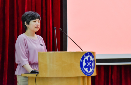 此次报告主题为“讲爱国奉献,当时代先锋”,旨在进一步贯彻落实习近平总书记关于弘扬爱国奋斗精神的一系列重要指示精神,积极倡导“创新科技,服务国家,造福人民”的科技价值观,并作为庆祝新中国成立 70 周年和中科院建院 70 周年的系列活动,开展优秀科学家和科研团队先进典型事迹的学习宣传,大力弘扬爱国奋斗精神。报告会上,王敏、黄晖两位共产党员分别以自己的亲身经历和切身感受,讲述了她们及所在单位在平凡科研岗位上兢兢业业、执着追求、无私奉献、攻坚克难,努力践行科技价值观的感人事迹。