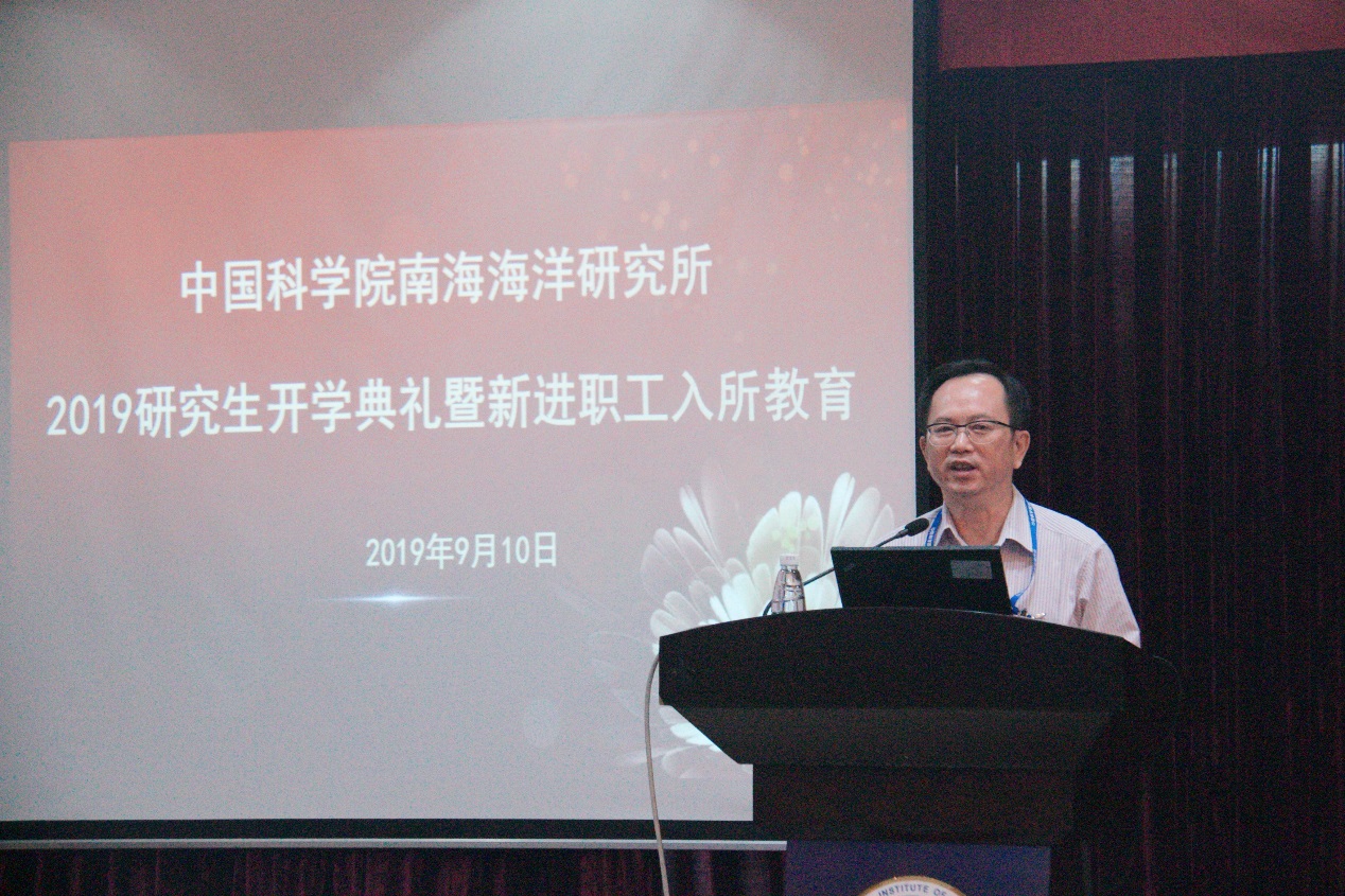 今年的9月10日是我国第35个教师节,中国科学院南海海洋研究所举行了2019年研究生开学典礼暨新进职工入所教育。所长张偲院士,党委书记、副所长詹文欢,所长助理张长生、鞠建华,管理部门负责人,导师代表,新进入所研究生、职工、博士后等参会。会议由人事教育处处长王发左、副处长李丹分段主持。