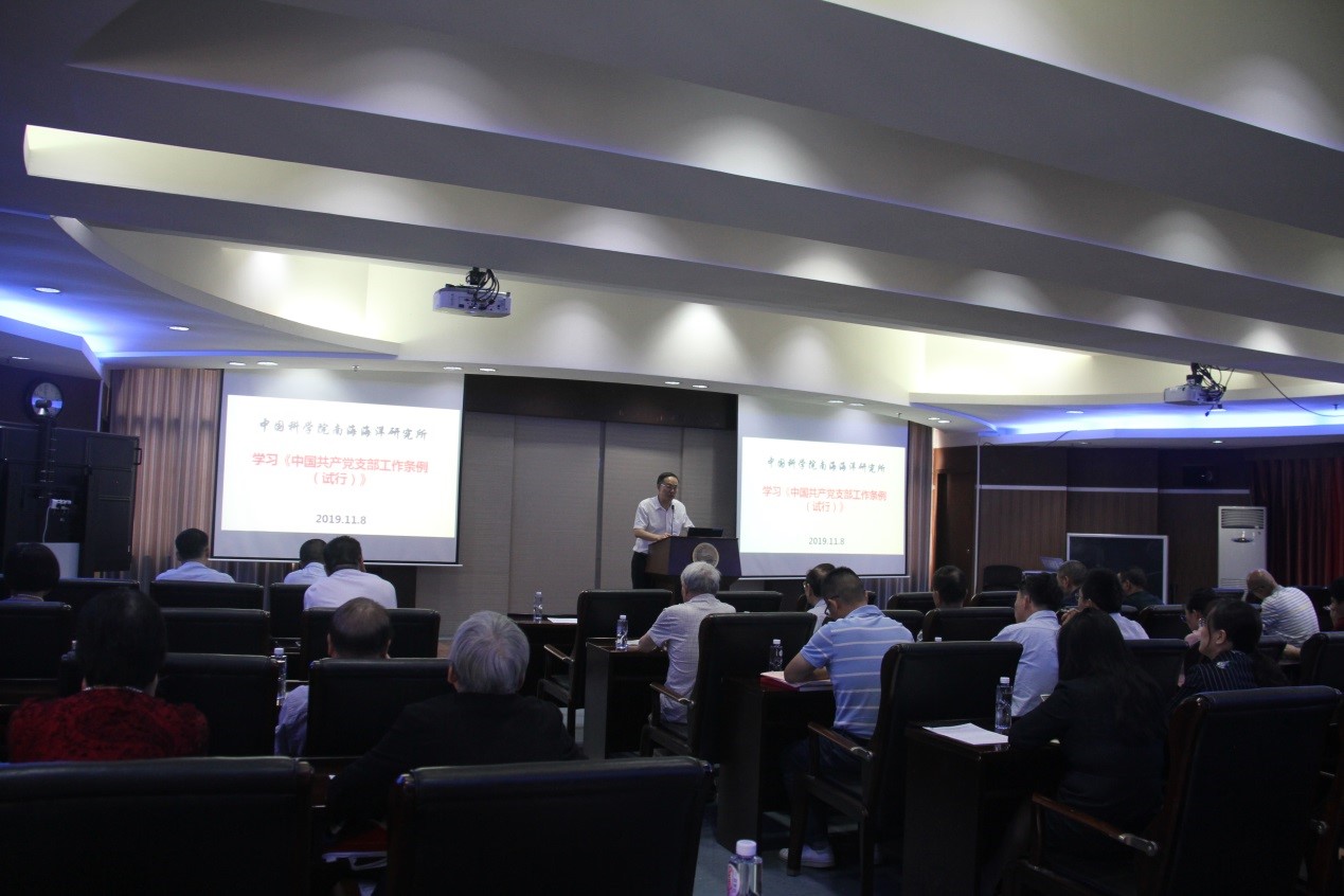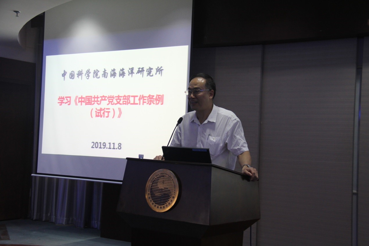 为推进基层党组织规范化建设,更好地发挥党支部战斗堡垒作用,11月12日,南海海洋所召开2019年度党支部书记培训会。党委书记、副所长詹文欢,党办工作人员,各党支部书记、副书记、支部委员等近50人参加。会议由党办副主任(主持工作)黄林丛主持。