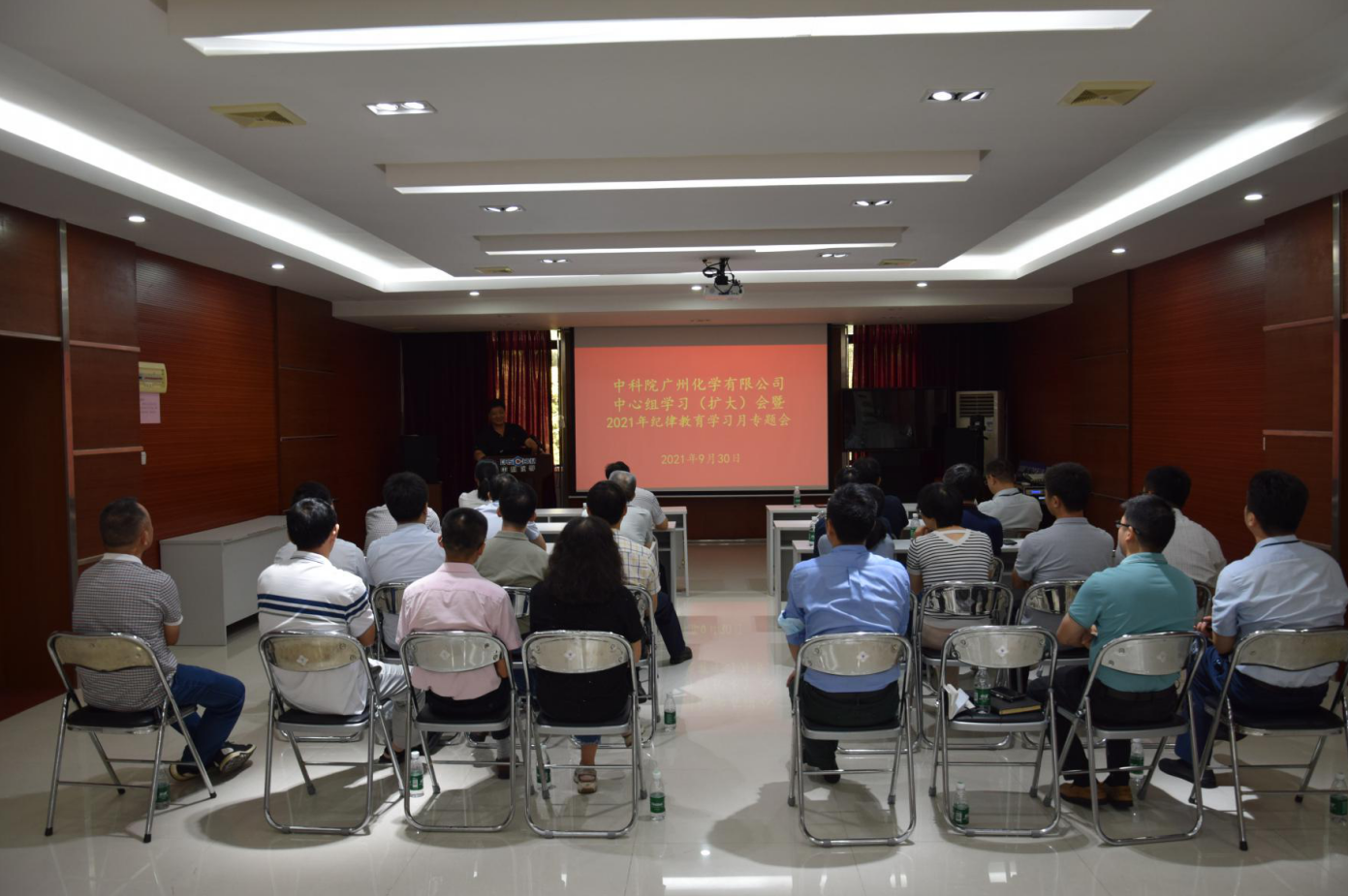9月30日,中科院广州化学有限公司(广州化学)召开中心组学习扩大会和2021年纪律教育学习月专题学习会,广州化学中层及以上领导干部、党委委员、纪委委员、控股公司总助以上领导干部、在职党支部书记参加会议。会议由广州化学党委副书记、纪委书记申智慧主持。