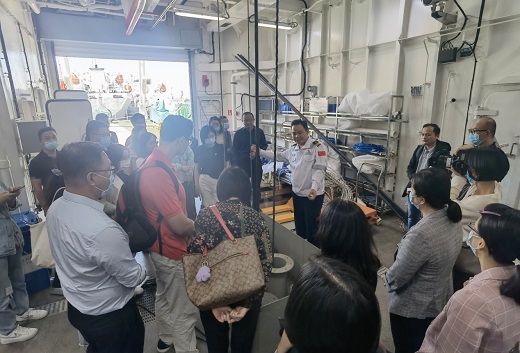 随后,党员们来到中国科学院“十三五”首个获批并第一个提前完工交付使用的“实验6”科考船,参观了科考船作业甲板、各类实验室及科考设备和驾驶室,深入了解各式各样的机械设备名称和用途、取样过程以及取得的优异成绩。
