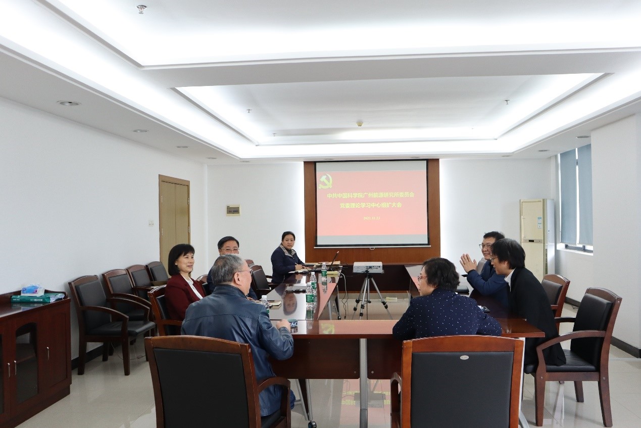 11月23日上午,中国科学院广州能源研究所党委理论学习中心组召开学习会议,专题学习党的十九届六中全会精神。在所党委委员参会,党委书记、副所长夏萍主持会议。