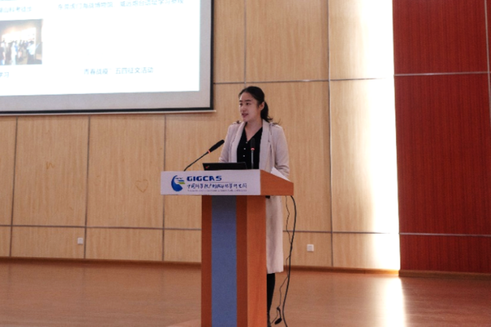 李思思代表共青团广州地化所第五届委员会从团委组织建设、活动开展情况、经费收支情况、团委获奖情况四个方面向大会做工作报告。全体团员听取并审议通过了第五届团委工作报告。