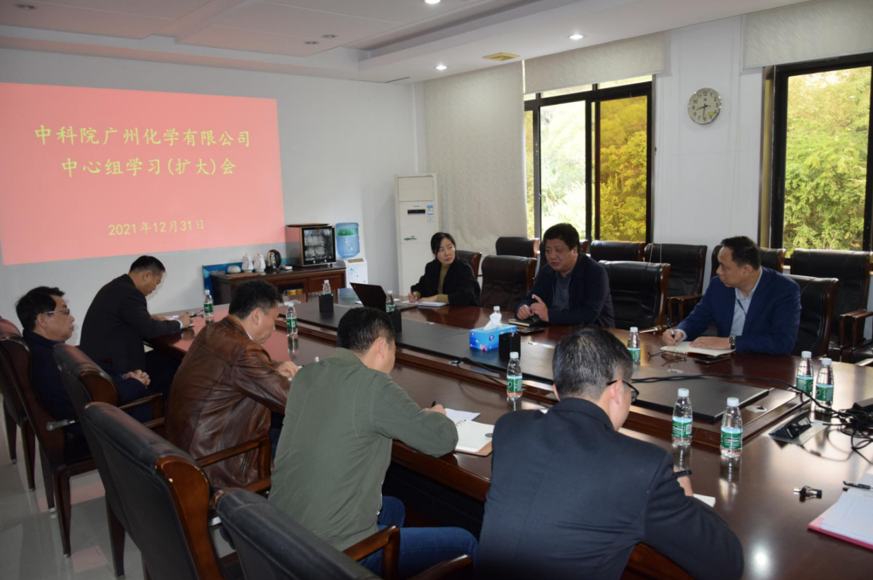 12月31日,中科院广州化学有限公司(广州化学)召开党委理论中心组(扩大)专题学习会议,广州化学全体党委委员、领导班子成员参加会议,会议由广州化学党委书记、董事长胡美龙主持。
