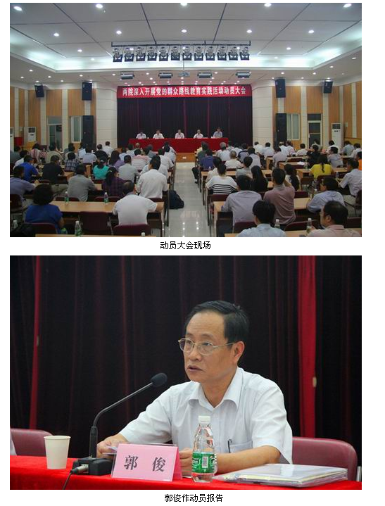 郭俊要求,教育实践活动是当前和今后一个时期两院各级党组织的一项重大政治任务。开展教育实践活动意义重大,任务繁重,各单位领导班子和领导干部要有强烈的责任感和紧迫感,切实加强组织领导,紧密结合实际,把教育实践活动抓好抓实,要认真落实责任,加强督查指导,注重统筹兼顾,搞好宣传引导,确保实践活动取得成效。