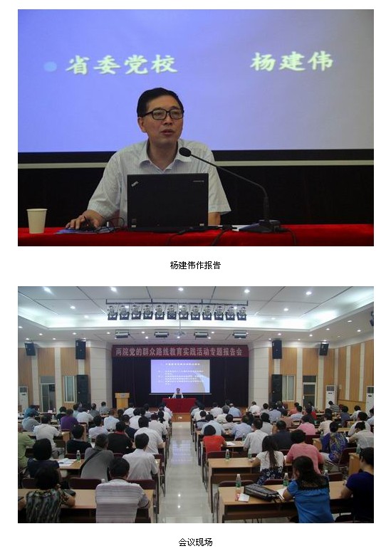 院属各单位领导班子成员、党委委员、纪委委员、党办主任、人事部门负责人、在职党支部书记,两院机关在职全体党员,两院实践活动领导小组办公室成员、督导组成员等近200人参加报告会。