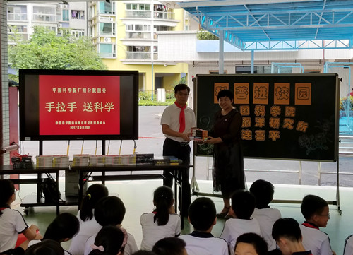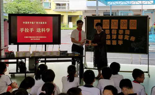 9月25日,由中国科学院广州分院团委主办,中科院南海海洋研究所团委承办的“手拉手、送科学”活动在广州市海珠区新港路小学举行。广州分院党群工作处处长郭震,新港路小学校长胡蓉、部分教师和该校五年级全体同学共120余人参加了活动。