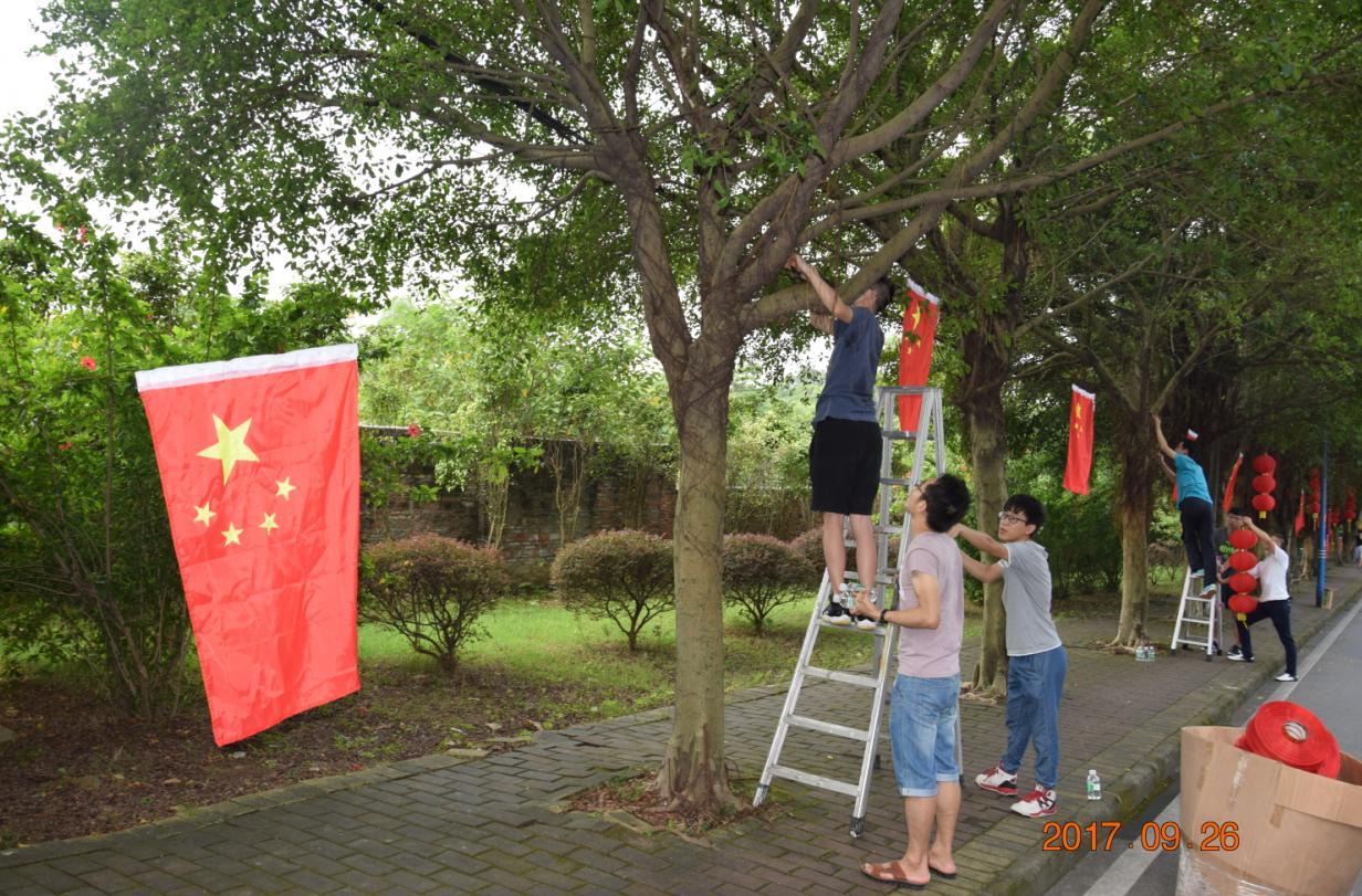 同时,广州化学团委在公司园区内组织开展了“庆国庆、挂国旗”活动,广州化学全体团员参加了此次活动。广州化学团委为广大青年团员准备了80余面国旗和灯笼,通过在公司园区内悬挂国旗的方式为祖国生日献礼,以表达自己的爱国之情,同时祝福祖国母亲繁荣昌盛,祝福祖国明天更加美好。
