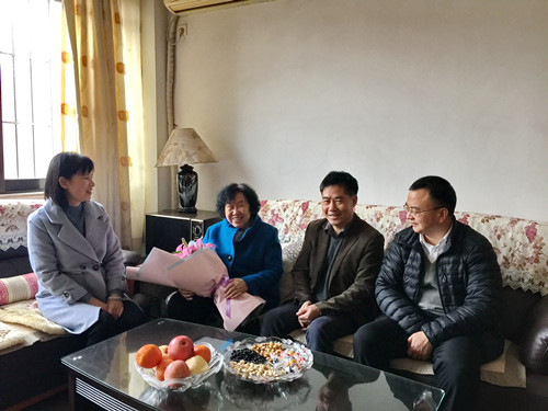 慰问全国先进工作者李华梅(左二)