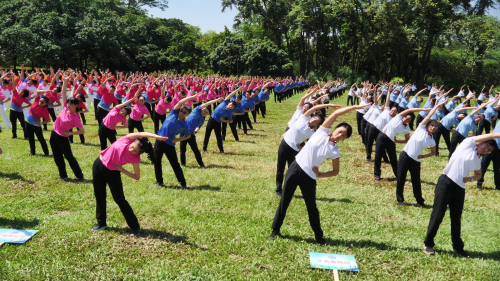 大众健步走完成后,第九套广播体操比赛紧接开展。根据参赛人数,12个基层工会分9批进行。在短短4分钟的音乐节奏中,参赛队员精神饱满、身姿矫健,整齐规范、干脆有力的技术动作充分展示了广州分院职工群众朝气蓬勃、团结奋进的精神风采。最后,全部参赛队员集体上场,进行了一次场面宏大的广播体操集体展示。
