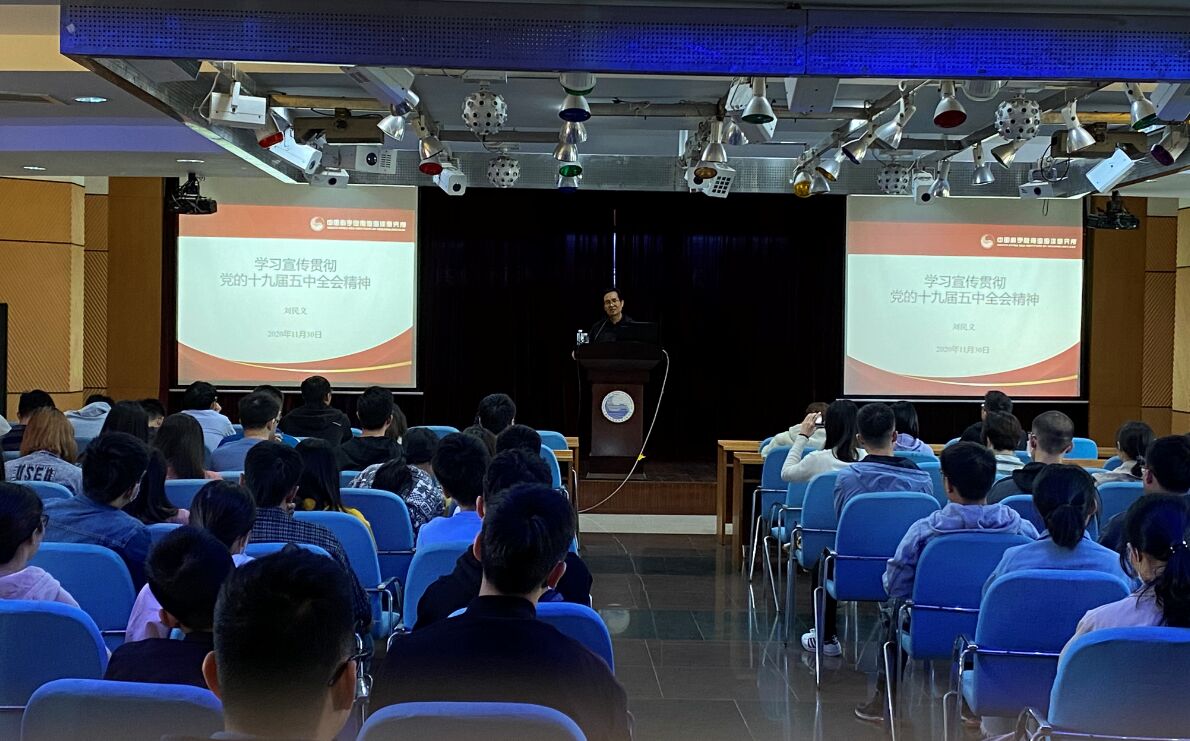 11月30日,南海海洋所团委为全所研究生宣讲党的十九届五中全会精神。南海海洋所党委副书记、纪委书记刘民义作宣讲报告。研究生、学生党员、共青团员共176人参加报告会。