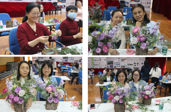 活动特邀资深插花老师从花艺基本知识、插花花材、插花类型、插花工具等四个方面进行了讲解,并从花卉选择、颜色搭配、花枝修剪等方面做了现场示范。在老师的悉心指导下,大家尽情发挥想象力和创造力,经过巧妙构思和搭配,使原本普通的花草变成了一件件独具匠心、赏心悦目的花艺作品。