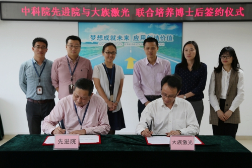 4月10日,大族激光集团副经理尹建刚一行来到中国科学院深圳先进技术研究院参观,并与深圳先进院签署了博士后联合培养协议。深圳先进院副院长许建国、集成所副所长孙蓉、合作办学与教育工作部部长杨帆等接待来宾并参加签约仪式。
