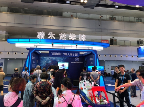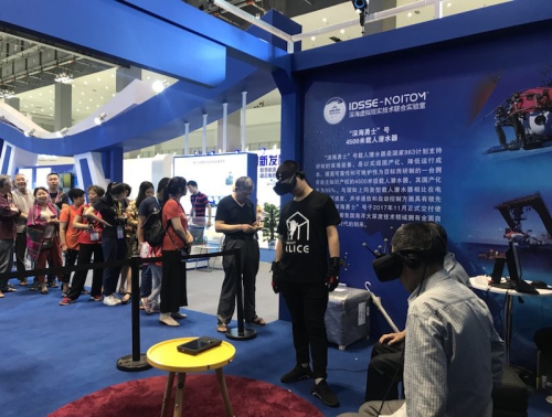 为深入贯彻军民融合发展战略,促进军民融合产业创新发展,中国科学院深海科学与工程研究所应科学技术部的邀请参加此次展会。深海所展出了“探索一号”科考船及其搭载的深海仪器设备模型,以视频形式向大众展示了中科院深渊科考队到马里亚纳海沟挑战者深渊开展深渊科考的情况,并利用虚拟现实技术(VR)多维解析了我国拥有自主知识产权的载人潜水器“深海勇士”号的结构原理,通过VR场景模拟让观众亲身体验乘坐“深海勇士”号潜入深海进行科考作业的场景。