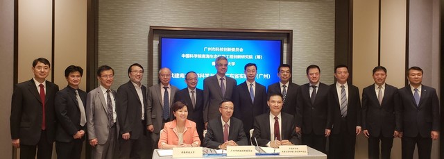 为深化粤港澳大湾区海洋科技创新协作,优化区域海洋产业结构,拓展蓝色经济发展新空间,推动粤港澳大湾区海洋经济发展,11月14日,广州市科技创新委员会、中国科学院南海生态环境工程创新研究院(筹)、香港科技大学三方共建南方海洋科学与工程广东省实验室(广州)签约仪式在香港科技大学举行。在广州市市长温国辉、香港科技大学校长史维等见证下,香港科技大学副校长叶玉如、广州市科技创新委员会主任王桂林、中科院南海海洋研究所业务副所长林间代表各自单位在合作协议书上签字。