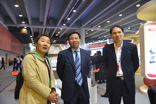 唐裕华(中)在周传忠(右)陪同下视察中科院展区