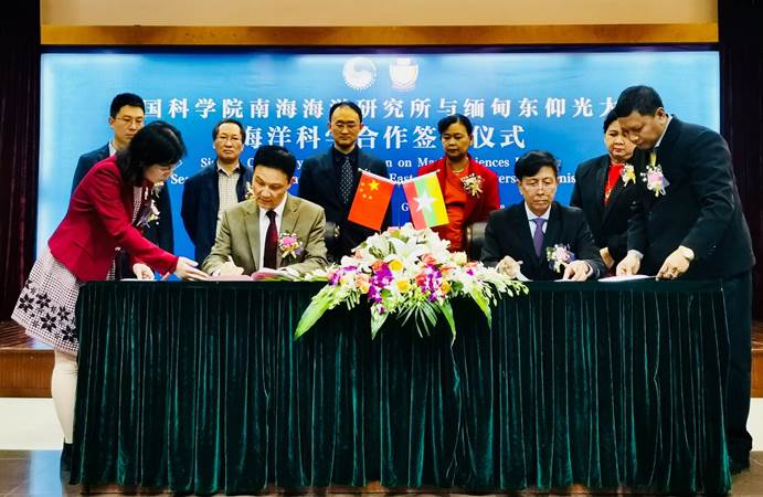 1月11日,中国科学院南海海洋研究所与缅甸东仰光大学海洋科学合作协议签署仪式在该所举行。南海海洋所副所长杜岩、业务副所长林间,缅甸东仰光大学校长Kyaw Kyaw Khaung出席并见证签约仪式。