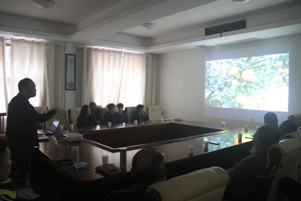柑橘种植专家周威讲授了桃源县柑橘产业发展的思路,重点介绍了柑橘的高效施肥技术,针对桃源县柑橘土壤的特点,讲授了如何科学施用钙镁锌和硼肥。