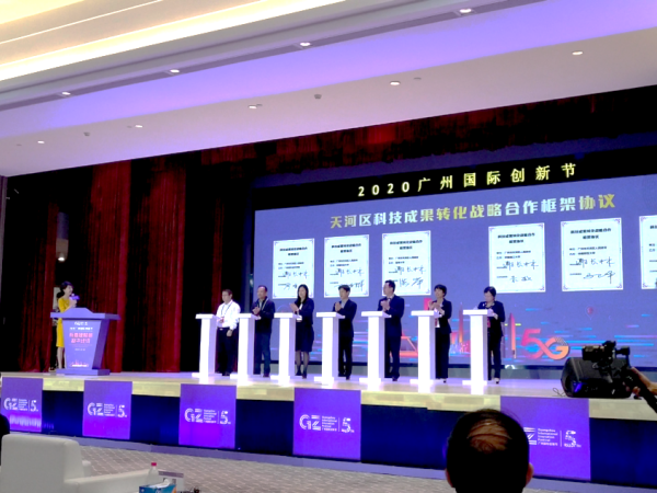 在2020广州国际创新节开幕式上,天河区政府与广州能源所、华南理工大学、暨南大学、华南农业大学、华南师范大学、广东省农科院等六家高校和科研机构分别签订了《科技成果转化战略合作框架协议》,协同建设广州(国际)科技成果转化天河基地。