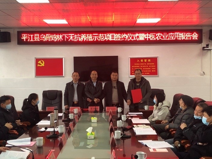 2月1日,应平江县农业农村局邀请,中国科学院亚热带农业生态研究所与湖南博富循环农业科技有限公司、湖南农业大学、湖南省循环农业产业发展协会正式签署了乌骨鸡林下无抗养殖示范项目和合作协议。签约仪式在平江县梅仙镇政府顺利举行。中国工程院院士、亚热带所研究员印遇龙,科技处副处长何寻阳,倪姮佳副研究员参加会议,省农业农村厅邱伯根、省政协农业委员会主任曹英华等领导、专家出会议。此次签约仪式由平江县畜牧水产农机事务中心主任朱劲松主持。