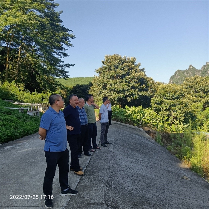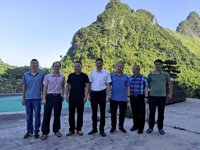 7月25日,广西松树研究首席专家、广西“八桂学者”、广西林科院总工程师、教授级高工杨章旗,广西环江毛南族自治县党委常委、自治县人民政府副县长谭石清,环江毛南族自治县木本油料中心主任韦理电,环江毛南族自治县城开集团林投公司总经理谭宏涛等一行到中国科学院环江喀斯特生态系统观测研究站(简称“环江站”)开展调研工作。中国科学院亚热带农业生态研究所研究员李德军陪同调研。