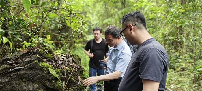 随后,陈保冬前往环江站古周示范区、木论国家自然保护区25公顷喀斯特森林监测大样地进行实地考察,现场调研丛枝菌根真菌在喀斯特地区农田和森林土壤中参与调控养分水分途径,并对样地土壤丛枝菌根真菌监测指标、丛枝菌根真菌参与促进岩石矿物风化等方面的问题提出解答和建议。