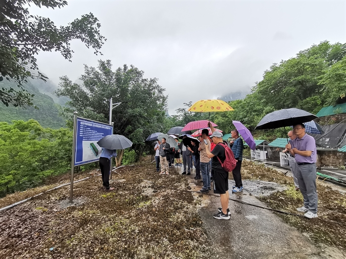 何寻阳介绍了环江站综合试验区布局,并一同参观关键带实验平台、植被-土壤-表层岩溶带三维水土过程试验场地、站区坡地水土流失监测小区等试验场地。他详细讲解了环江站建站历史、研究定位和目标、人才队伍和承担的主要科研项目、所取得的科研技术成果、成果应用推广及产生的社会影响等。