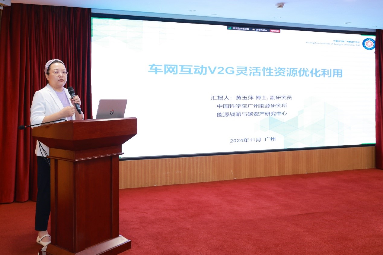广州能源所能源战略与碳资产研究中心黄玉萍副研究员分享了车网互动V2G灵活性资源优化利用研究成果,研究依托动态电动汽车资源网、超充网络、多能源供应网和能源传输网络,基于人工智能算法和随机优化理论,研究并突破储荷资源智能识别与多维资源预测、车桩资源优化分配与供需平衡调度以及融合移动储能源网荷储协调优化和规划等关键技术,支撑智慧资源应用场景的示范,实现源网储荷互动和智能调控。