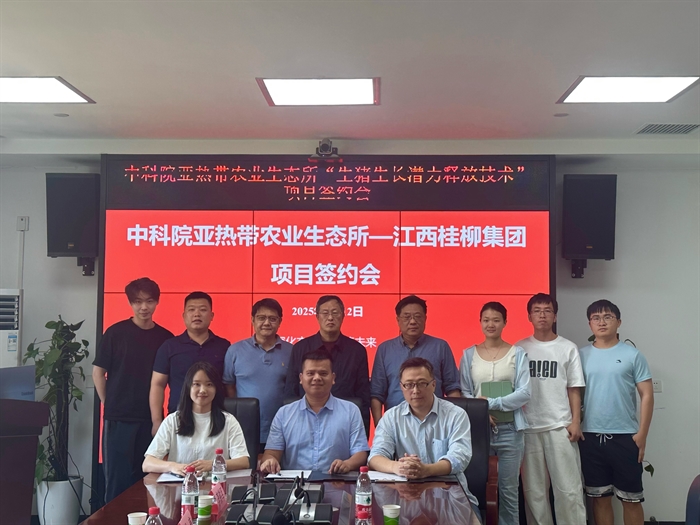 5月12日,中国科学院亚热带农业生态研究所印遇龙院士团队与江西桂柳集团(江西桂柳食品有限公司)在长沙举行生猪生长潜力释放技术项目成果应用合作协议的签约仪式。中国工程院院士、亚热带生态所首席科学家印遇龙,科技管理与规划处处长徐宪立,畜禽健康养殖与农牧复合生态研究中心李铁军研究员、姚康研究员,江西桂柳食品有限公司骆丽忠总经理、龚飞林副总经理,以及团队研发代表等出席。