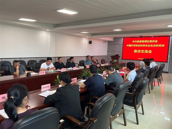 5月16日,屈原管理区党委书记向科军一行到中国科学院亚热带农业生态研究所围绕“水稻-水牛-种养循环”产业高质量发展暨创建国家农高区建设开展调研。亚热带生态所各研究中心负责人、相关科研骨干及科技处、综合办等人员参加座谈会。会议由亚热带生态所党委书记、副所长谭支良主持。