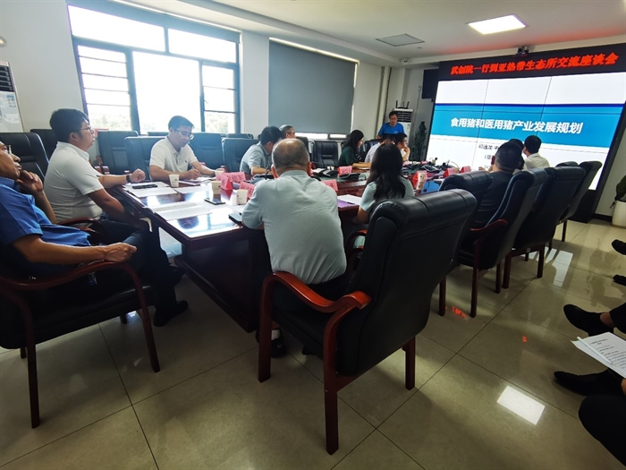 会上,武创院介绍了研究院使命与考察目标。印遇龙团队进行前沿技术分享,包括《食用猪和医用猪产业发展规划》和《规模猪场废弃物高效高值转化技术创新》。双方围绕农业颠覆性技术合作展开深入探讨,旨在推动食用猪产业、医用猪培育、废弃物资源化利用与循环高质量农业等领域的跨机构协同创新,及未来合作机制与模式。