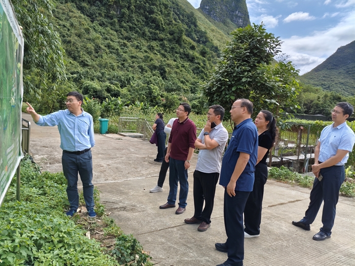 为进一步加强喀斯特地区水土资源利用与保护工作,10月20日,广西壮族自治区水利厅副厅长黄学超、广西水利科学研究院院长黄凯、南京大学谢月清教授一行到中国科学院亚热带农业生态研究所环江喀斯特生态系统观测研究站交流调研。环江毛南族自治县科技副县长、亚热带生态所研究员聂云鹏陪同参加。