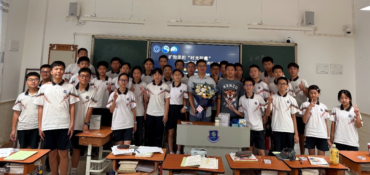10月15日,中国科学院广州地球化学研究所科普进校园活动走进广州外国语学校,张万峰高级工程师为学校初二年级物理竞赛集训班带来了一场题为《矿物里的“时光胶囊”——侦破岩石深处的历史故事》的科普报告。整场报告内容生动、趣味盎然,为同学们呈现了一场知识与灵感交织的科学盛宴。