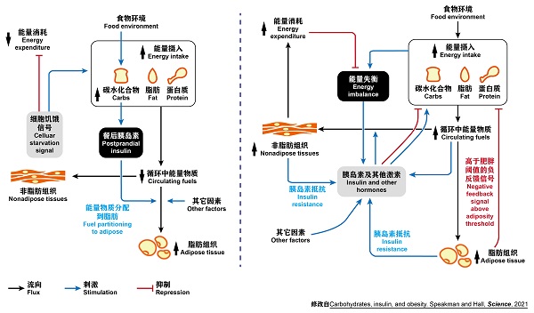 左为碳水化合物-胰岛素模型,右为能量平衡模型(供图:肖仲琳)