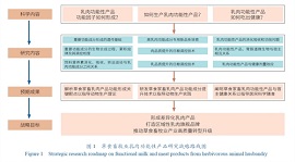 中国科学院亚热带农业生态研究所谭支良研究员领衔的农牧复合草食家畜健康高效养殖与生态服务研究团队,收集和整理草食家畜乳肉功能性成分调控的相关文献资料并结合团队的前期工作,剖析了草食畜牧业乳肉功能性产品研究的前沿科学和技术问题,提出了我国草食畜牧业乳肉功能性产品研究的战略路线(图1)。发展草食畜牧业乳肉功能性产品的主要路径包括利用遗传改良方法培育新品系、调控日粮配方改变功能成分合成过程、靶向合成草食家畜乳肉功能成分前体物质三个方面。其中,在调控日粮配方改变功能成分合成过程方面,团队前期研究发现在肉羊日粮中添加3.0-4.0g/kg 儿茶素可有效改善肉羊肌肉品质,提升肌肉中不饱和脂肪酸的比例;在泌乳羊日粮中增加单宁,羊乳中单不饱和脂肪酸及多不饱和脂肪酸含量随日粮中单宁添加量增加而线性增加。