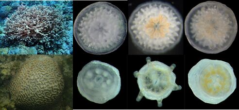 下: 精巧扁脑珊瑚Platygyra daedalea及其幼体