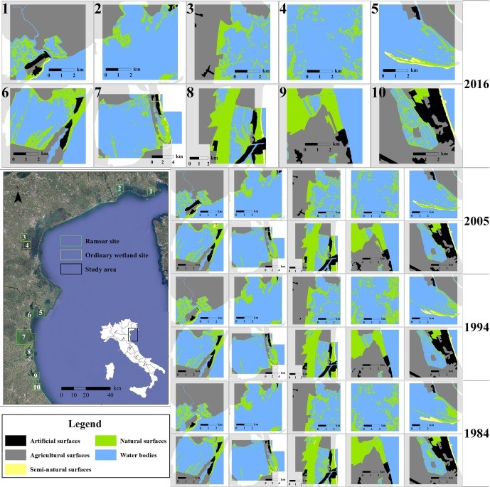 意大利东北部湿地环境空间格局演变图(1984~2016)