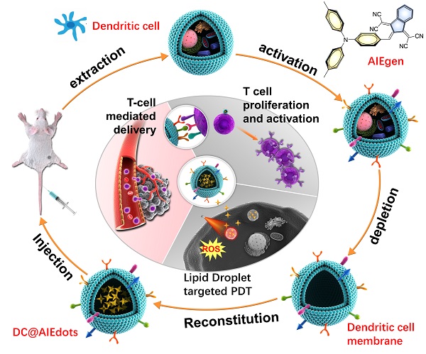 近日,中国科学院深圳先进技术研究院/深圳理工大学医药所纳米医疗技术研究中心蔡林涛研究员团队与香港科技大学/香港中文大学(深圳)唐本忠院士团队合作,在“新型智能仿生聚集态纳米诊疗系统”研究中获得新进展。相关研究成果以Biomimetic Aggregation‐Induced Emission Photosensitizer with Antigen-Presenting and Hitchhiking Function for Lipid Droplet Targeted Photodynamic Immunotherapy(具有抗原提呈与搭车功能的脂滴靶向的仿生聚集诱导发光光敏剂用于光免疫治疗研究)为题在线发表在于材料领域权威期刊《先进材料》(Advanced Materials)上,并已申请2项中国发明专利(申请号:CN202110313874.2;CN202110314604.3)。论文第一作者为深圳先进院联培硕士生徐秀丽,蔡林涛研究员、唐本忠院士、张鹏飞副研究员为论文共同通讯作者。