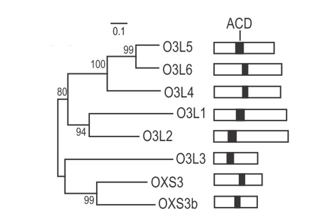 图1. OXS3蛋白的系统发育树。(注:ACD:N-acetyltransferase catalytic domain、n-乙酰转移酶催化结构域)