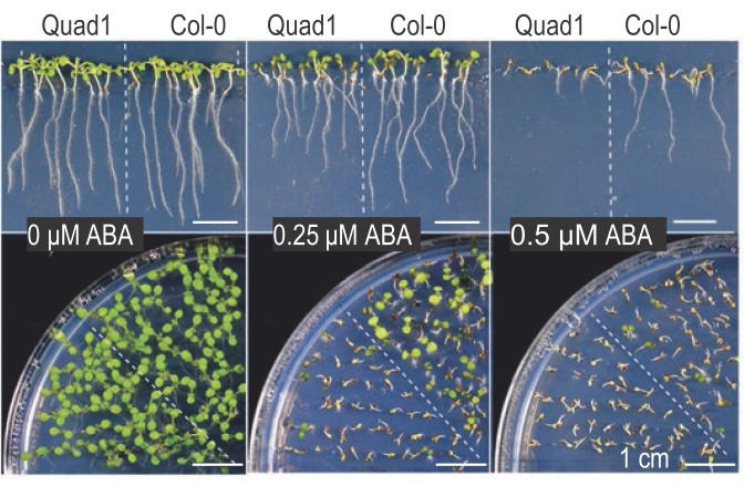 逆境可诱导植物幼苗的生长停滞,让植物等待有利于生长的条件来临。在拟南芥中,脱落酸ABA(Abscisic acid)是介导该过程的重要信号物质,因此研究ABA信号转导机制不但有助于解析植物的抗逆策略,也可以为优良种质创制提供有价值的信息。