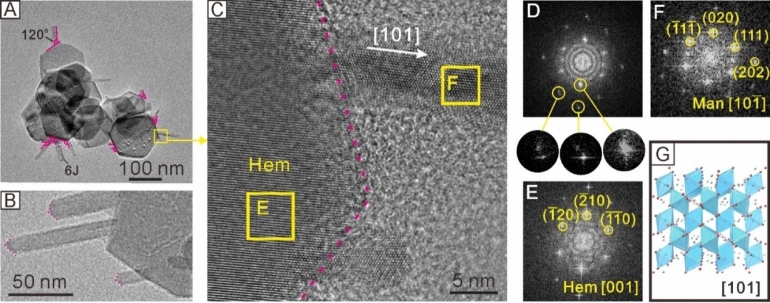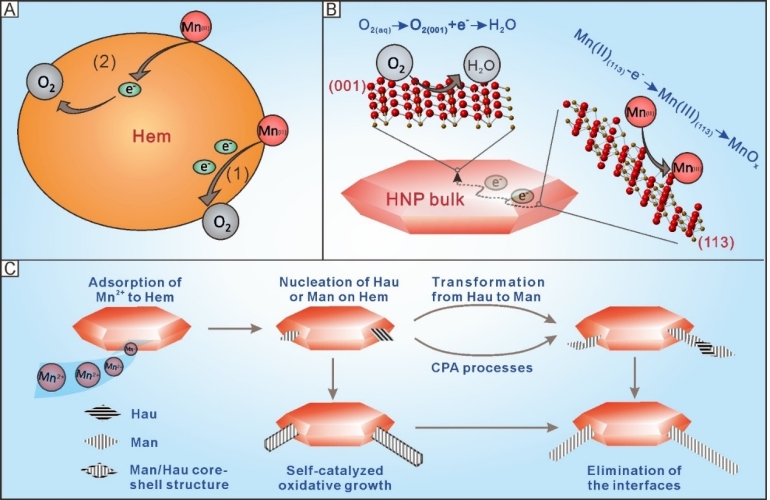 原文信息:Liu, J., Inoué, S., Zhu, R.*, He, H., and Hochella Jr, M. F.* (2021). Facet-specific oxidation of Mn (II) and heterogeneous growth of manganese (oxyhydr) oxides on hematite nanoparticles. Geochimica et Cosmochimica Acta 307, 151-167.
