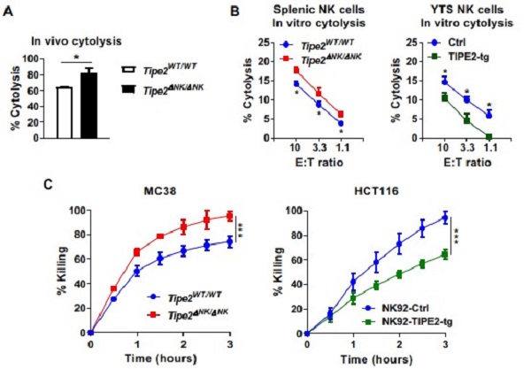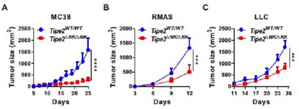 图4. TIPE2负调控NK细胞的抗肿瘤免疫应答