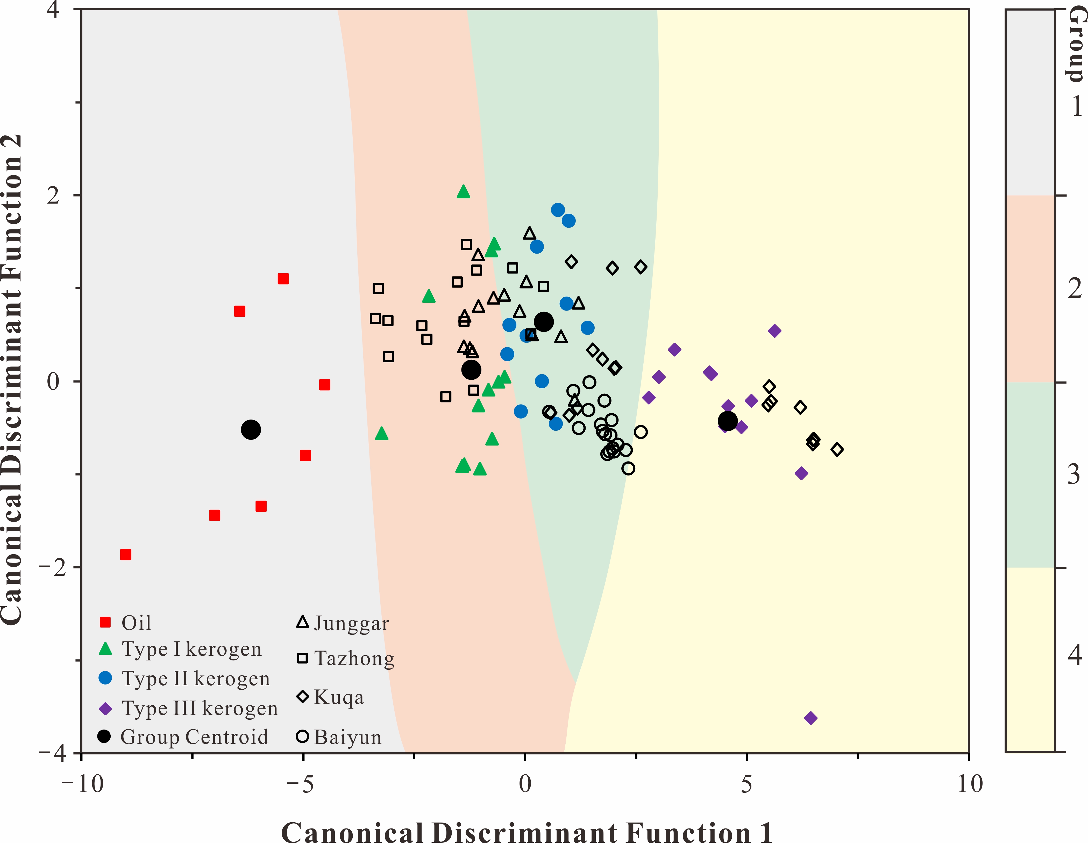 天然样品中金刚烷化合物种类多、单个化合物浓度变化大、影响因素复杂(如来源、热演化程度和次生蚀变)。如何充分利用原油金刚烷数据,评估不同因素对这些数据的影响至今仍是一个挑战。近期,中国科学院广州地球化学研究所有机地球化学国家重点实验室、深地科学卓越创新中心熊永强研究员课题组蒋文敏博士后和李芸特任研究员,结合前期在金刚烷研究上取得的成果,利用多元统计分析数据处理方法,对原油中金刚烷数据进行分析,尝试建立基于金刚烷的原油母质类型和成熟度判识模型,并应用于我国部分含油气盆地的原油。