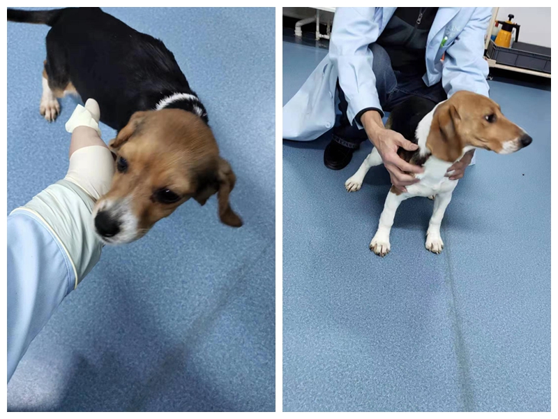 图一:注射外源胰岛素治疗永久性新生儿糖尿病模型犬,左边纯合突变体,右边嵌合突变体