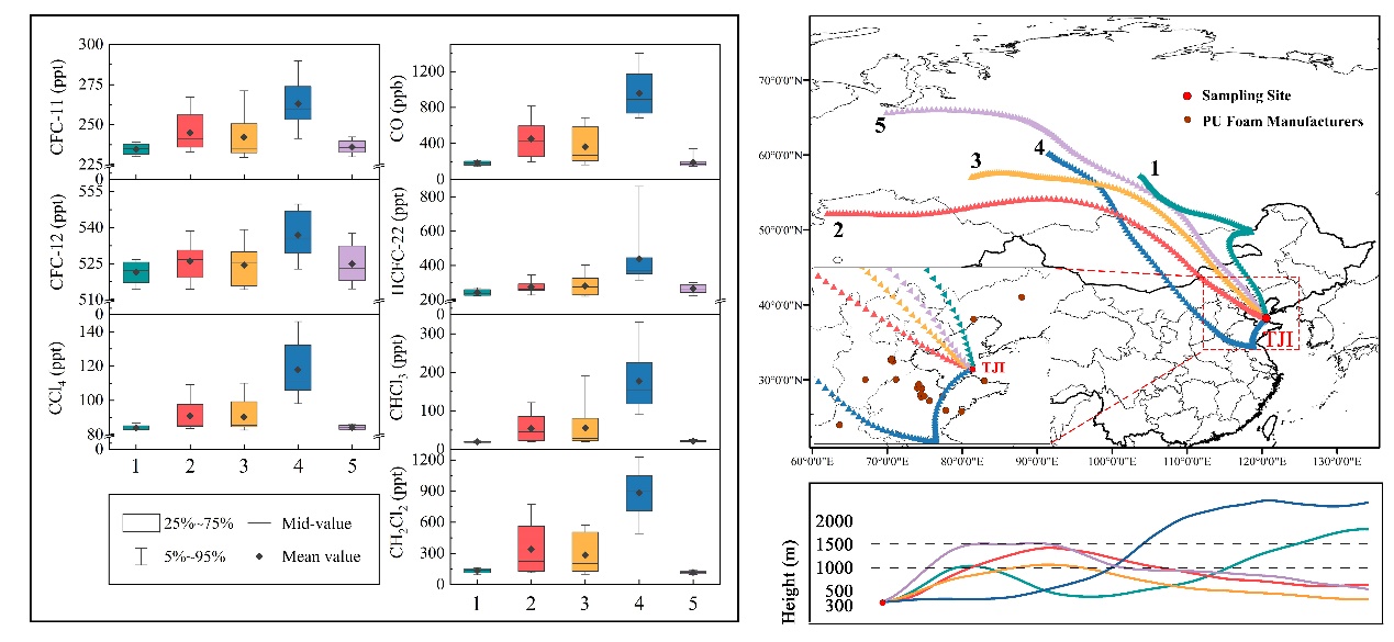 CFCs (氟氯烃类化合物,又称“氟利昂”)是一类从上世纪三十年代开始使用的第一代制冷剂和发泡剂。CFCs在对流层中很稳定,寿命达几十到上百年,可传输至平流层并光解产生活性氯原子,对臭氧层产生巨大的破坏作用。为保护臭氧层,自20世纪80年代开始,各国在《蒙特利尔议定书》及其修正案的框架下,先后限制了包括CFCs在内的消耗臭氧层物质(ODS)的生产和使用。我国做为发展中国家,应在2010年1月前完全停止生产和使用CFCs。CFC-11(CCl3F,一氟三氯甲烷)贡献了平流层中约四分之一的活性氯原子,一个氯原子可以破坏十万个臭氧分子,因而对臭氧层的破坏能力极强。随着《蒙特利尔议定书》及其修正案的实施,大气中CFC-11的浓度在90年代中期达到峰值后开始逐步下降。然而,2018和2019年相继发表在《Nature》上的两篇文章,发现2012年后大气中CFC-11的浓度下降速率变慢,推测可能出现了CFC-11的“意外排放”,并基于在太平洋全球背景站点的观测指出该“意外排放”主要来自东亚,中国东部贡献了全球CFC-11“意外排放”的约40-60%,而山东和河北等可能是排放热点地区。这一发现引起了媒体的广泛关注,使我国遭受了严重的环境外交压力。客观而言,这些研究对中国东部CFC-11排放量的估算均是基中国大陆以外极少数站点的观测数据,且不同研究估算的排放量相差很大,非常缺乏基于本地实测数据的估算和评估。