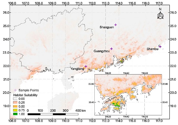 图1. 东亚笔筒树栖息地适宜性预测