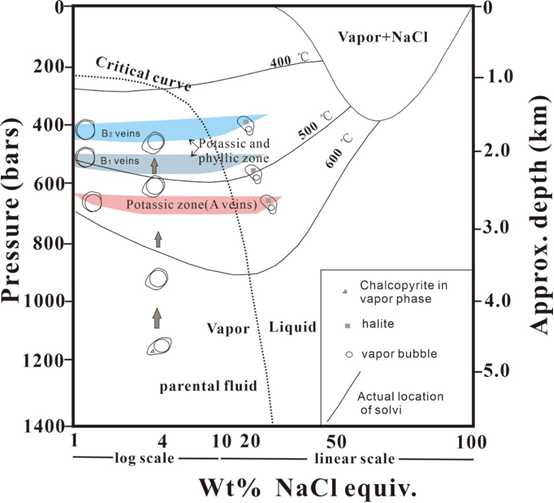 图. 朱诺流体包裹体盐度-压力相图(H2O-NaCl 体系)