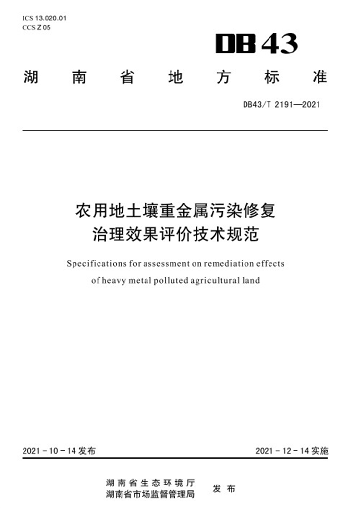 为推进农用地土壤重金属污染防治,引导受污染农用地土壤长效修复治理,促进农业绿色高质量发展,保障农产品质量安全和人民群众身体健康,中国科学院亚热带农业生态研究所长沙农业环境观测研究站副研究员朱捍华牵头、联合湖南省生态环境农村工作站等单位起草制订了一项湖南省地方标准《农用地土壤重金属污染修复治理效果评价技术规范》(DB43/T 2191-2021),于2021年10月14日发布,2021年12月14日实施。
