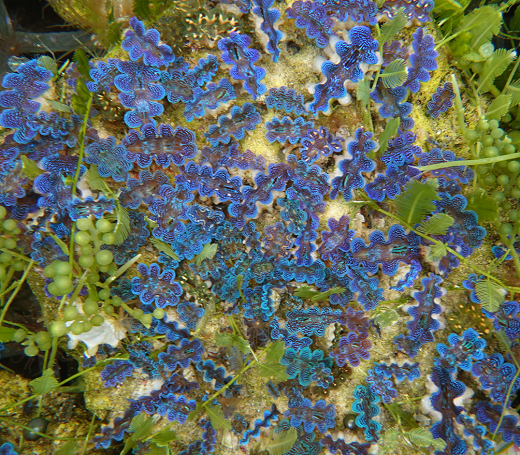 专家组听取了研究团队项目汇报,审阅了相关资料,考察了砗磲苗种人工繁育试验及培育基地现场,并对繁育的番红砗磲子二代进行了现场抽样计数、测量和颜色核定。学科组于2017年构建了番红砗磲黄岩岛群体F0群体,2019年培育了F1(子一代,蓝色和棕绿色品系);2021年繁育了上述两个品系的F2(子二代),并已经过6个月的中间培育;番红砗磲子二代总数共计6万余个,幼贝状态健康、活力好。